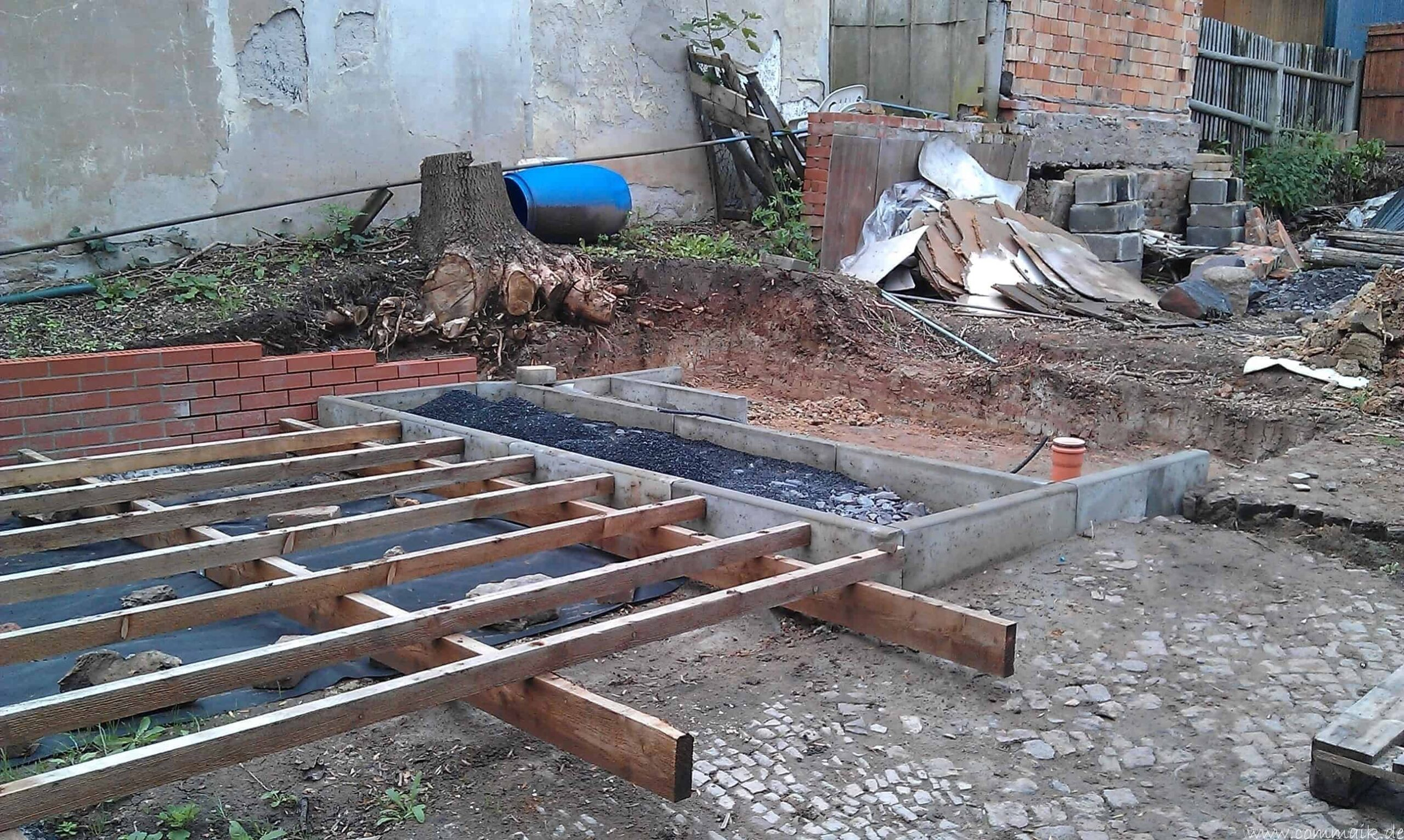 Doch zunächst von Anfang an: Dort wo die neue Terrasse entstehen sollte befand sich zunächst noch der Lagerplatz für unseren alten Bauschutt.