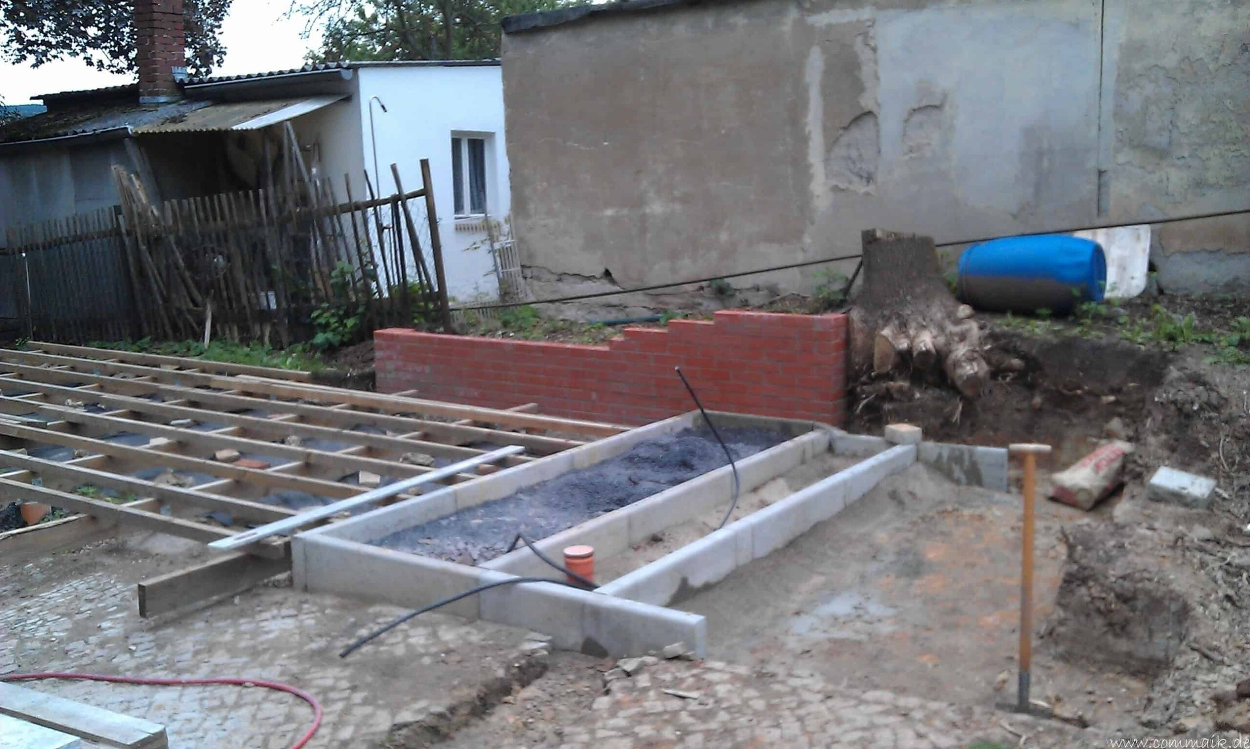 Zunächst wollten wir den Schutt mit einem Radlader abfahren lassen. Allerdings kam kein zeitnaher Termin zustande so das ich irgendwann anfing den alten Bauschutt mit der Schubkarre selber abzufahren. Nachdem man anfangs kaum einen Fortschritt sah, machte es am Ende aber richtig Spaß die rund 15 Kubikmeter quasi per Hand wegzubringen.