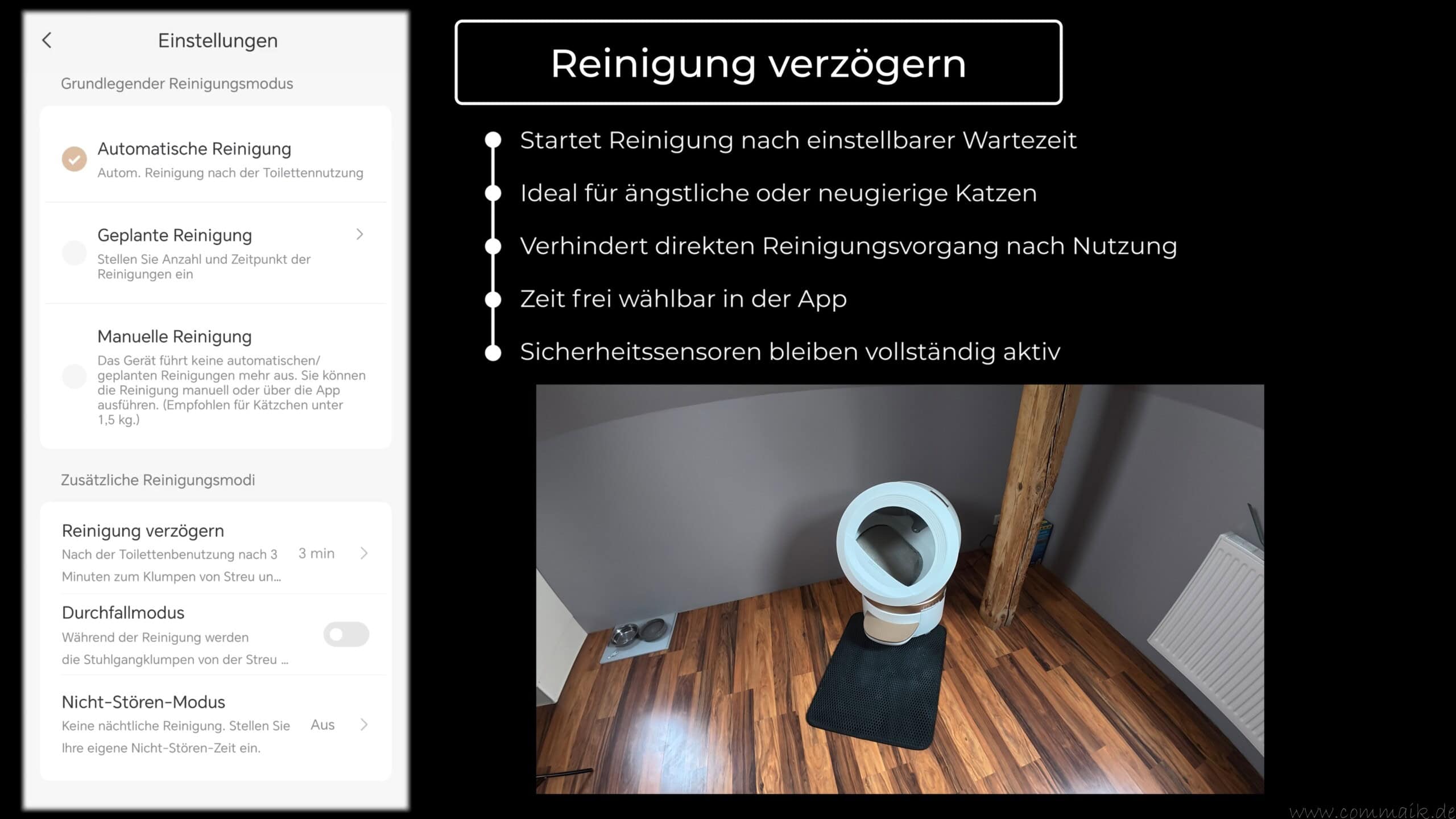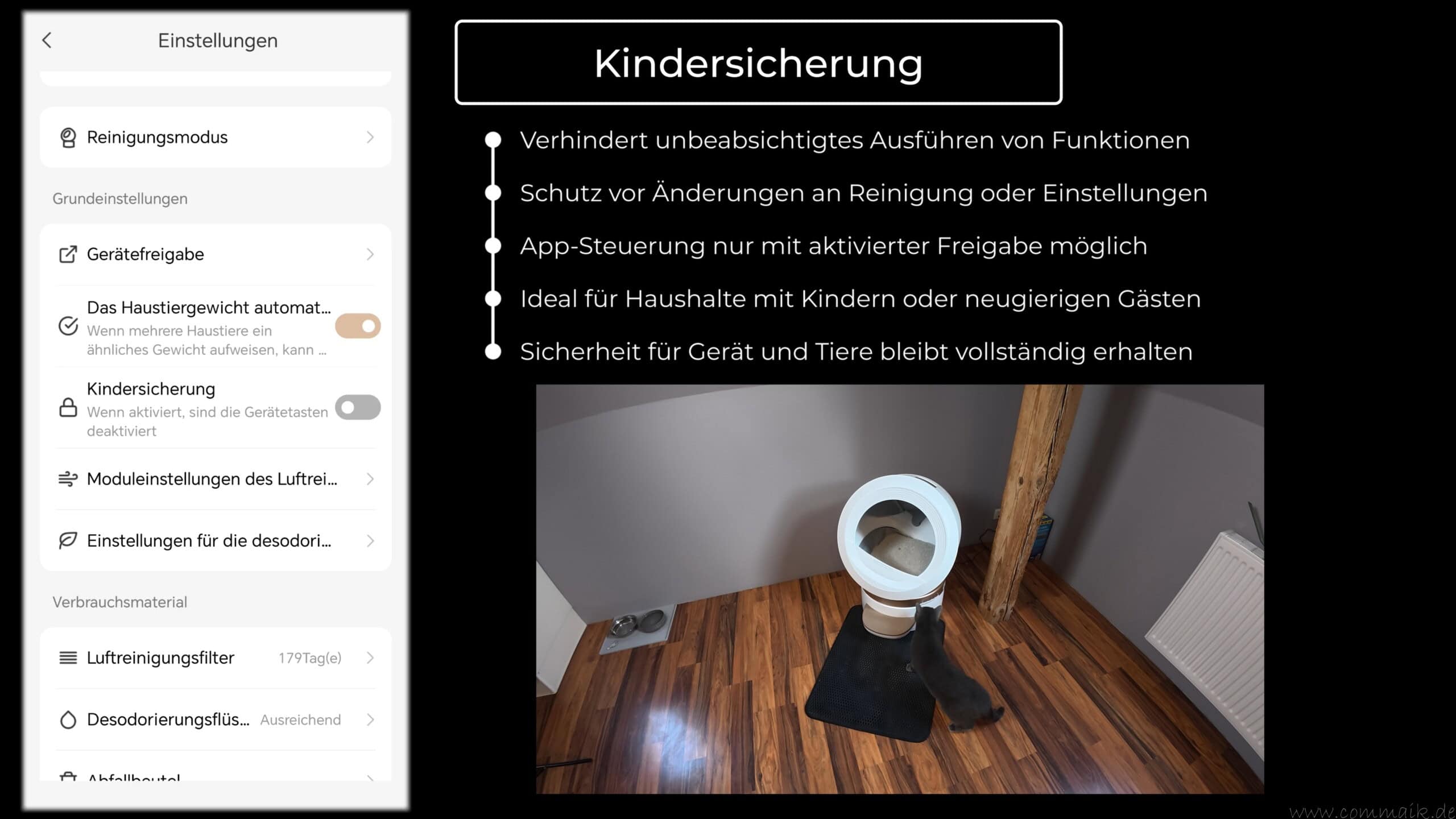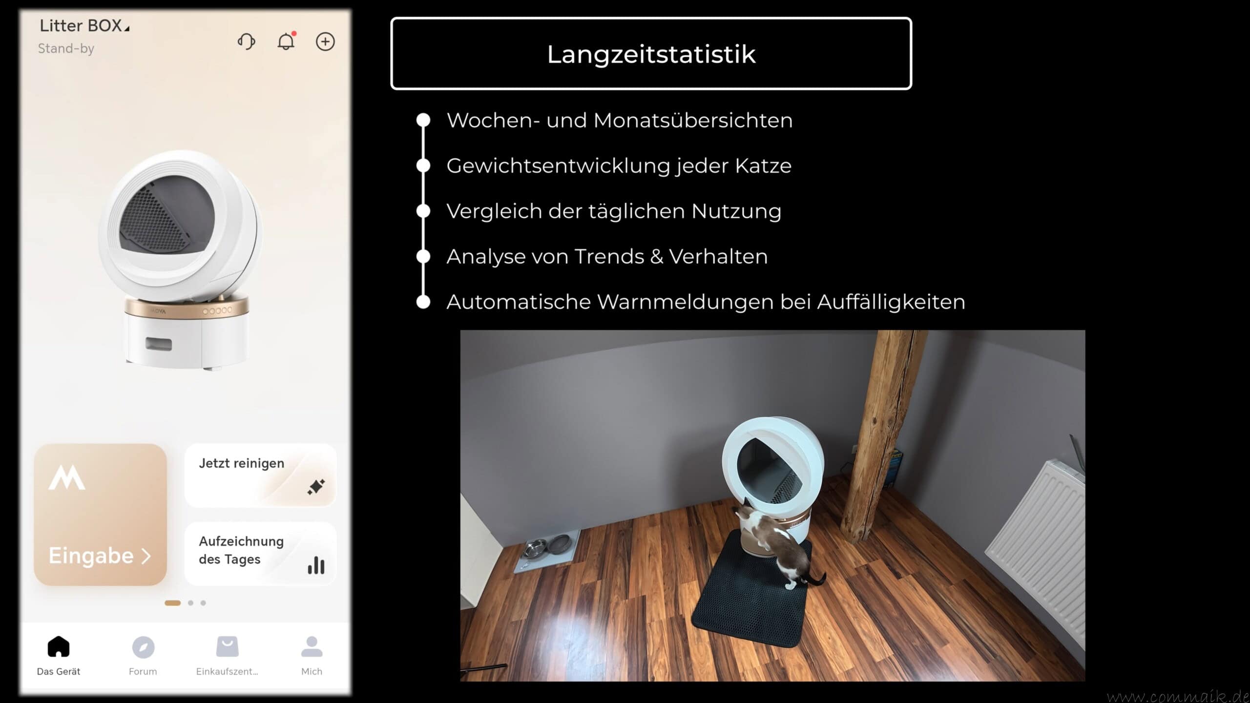 Insgesamt ergänzt die App das automatische Katzenklo sinnvoll und macht aus der Katzentoilette ein vernetztes System, das sich flexibel an den Alltag anpassen lässt und den manuellen Aufwand deutlich reduziert.