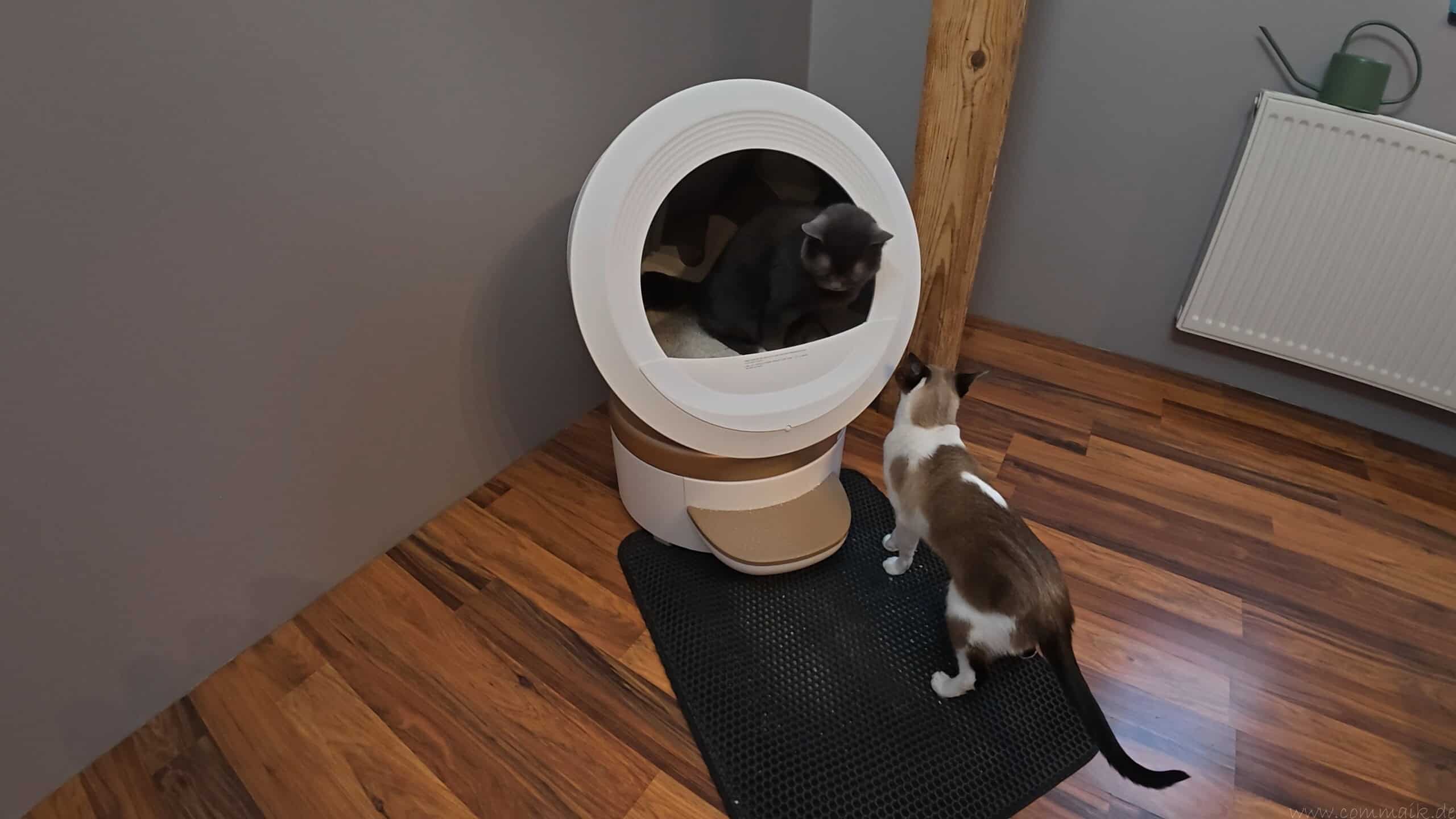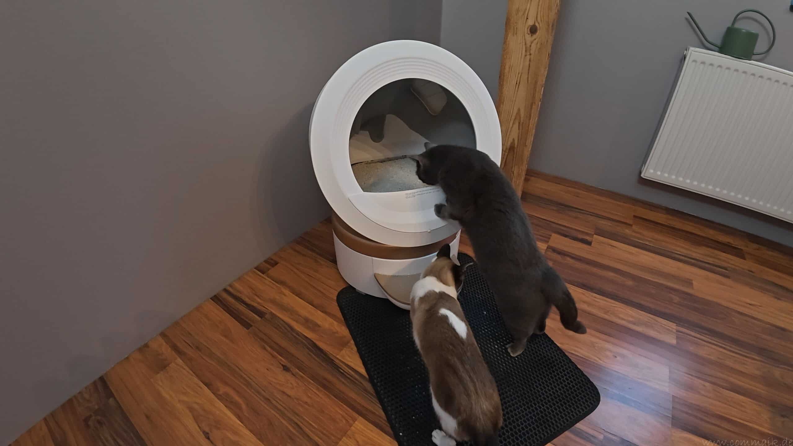 Im täglichen Betrieb sorgt die automatische Reinigung dafür, dass das Katzenklo konstant sauber bleibt. Verschmutzte Bereiche oder bereits genutztes Streu sind für die Katzen beim nächsten Toilettengang nicht mehr präsent. Das wirkt sich spürbar auf die Nutzung aus, da beide Katzen die Toilette gleichmäßig und ohne Ausweichverhalten verwenden. Im Vergleich zu herkömmlichen Katzentoiletten entfällt das typische Problem, dass einzelne Katzen bestimmte Toiletten meiden oder bevorzugen.