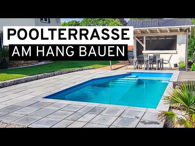 Steinplatten Terrasse am Pool in Hanglage bauen – Schritt-für-Schritt Anleitung